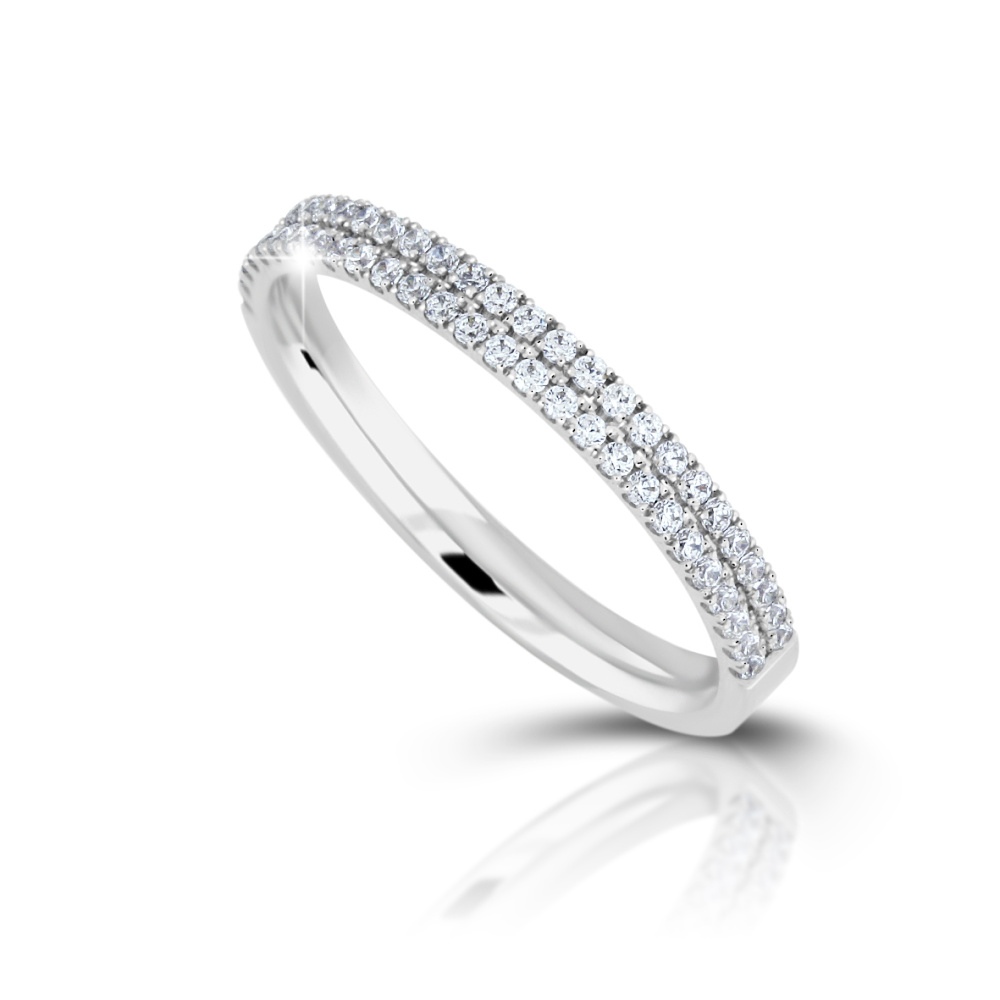 Kamenové snubní prsteny s jednou řadou kamenů jsou elegantní a nadčasovou volbou pro páry, které dávají přednost jemnému, čistému designu. Jedna linie pečlivě vsazených kamenů dodává prstenu decentní třpyt, aniž by působil přehnaně. Ideální kombinace krásy, praktičnosti a každodenní nositelnosti.